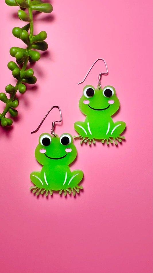 PDX Protest Frog Earrings – Handmade Acrylic Statement Jewelry