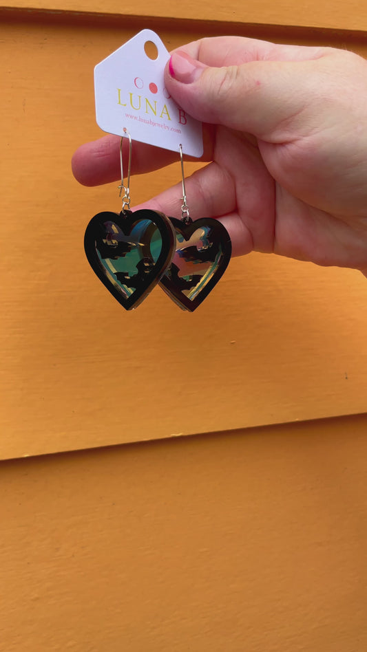 Freakin' Bats Earrings – Iridescent Sunset Bat Dangles | Laser Cut Acrylic Halloween Jewelry