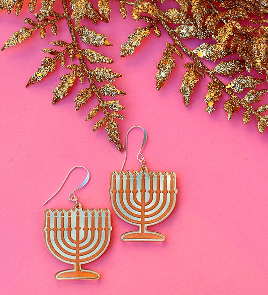 Golden Menorah Earrings – Handmade Hanukkah Jewelry