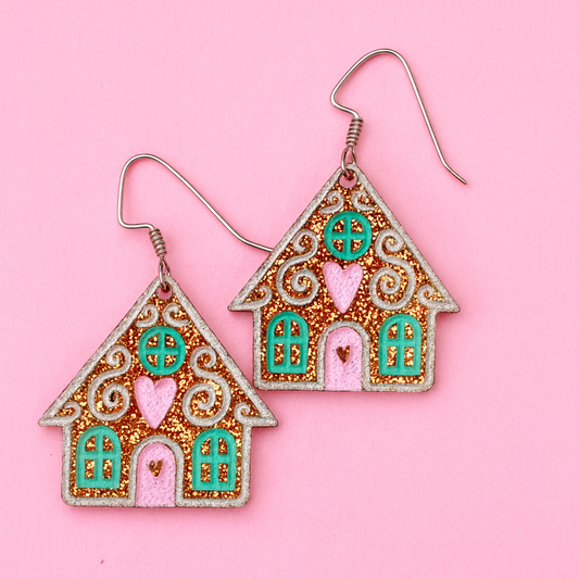 Gingerbread House Earrings – Glitter Candy Cottage Holiday Dangles | Luna B Jewelry