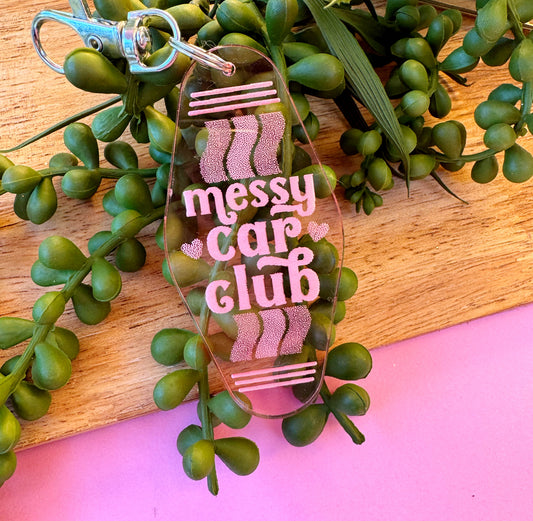 Messy Car Club Motel Keychain – Laser-Cut Acrylic in Retro Colors