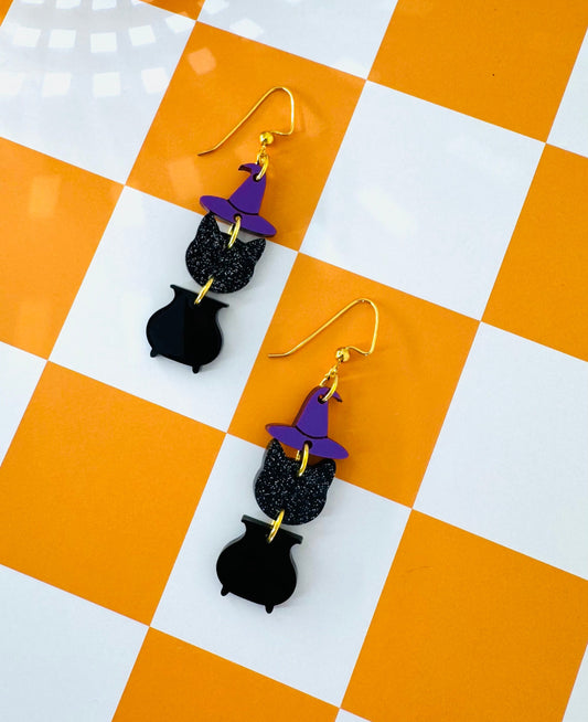 Witch Hat, Cat & Cauldron Earrings – Halloween Dangle Jewelry for Sensitive Ears Regular price $25.00Sale price $25.00 Regular priceUnit price ( per )