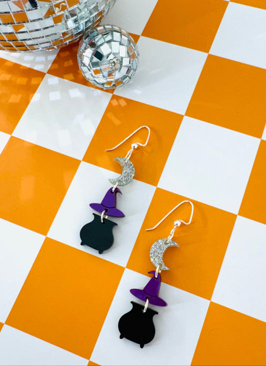 Witch Hat, Moon & Cauldron Earrings – Halloween Dangle Jewelry for Sensitive Ears Regular price $25.00Sale price $25.00 Regular priceUnit price ( per )