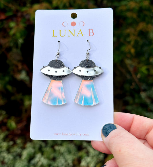Pastel Ghost and Butterfly Earrings – Iridescent Halloween Dangles for Sensitive Ears