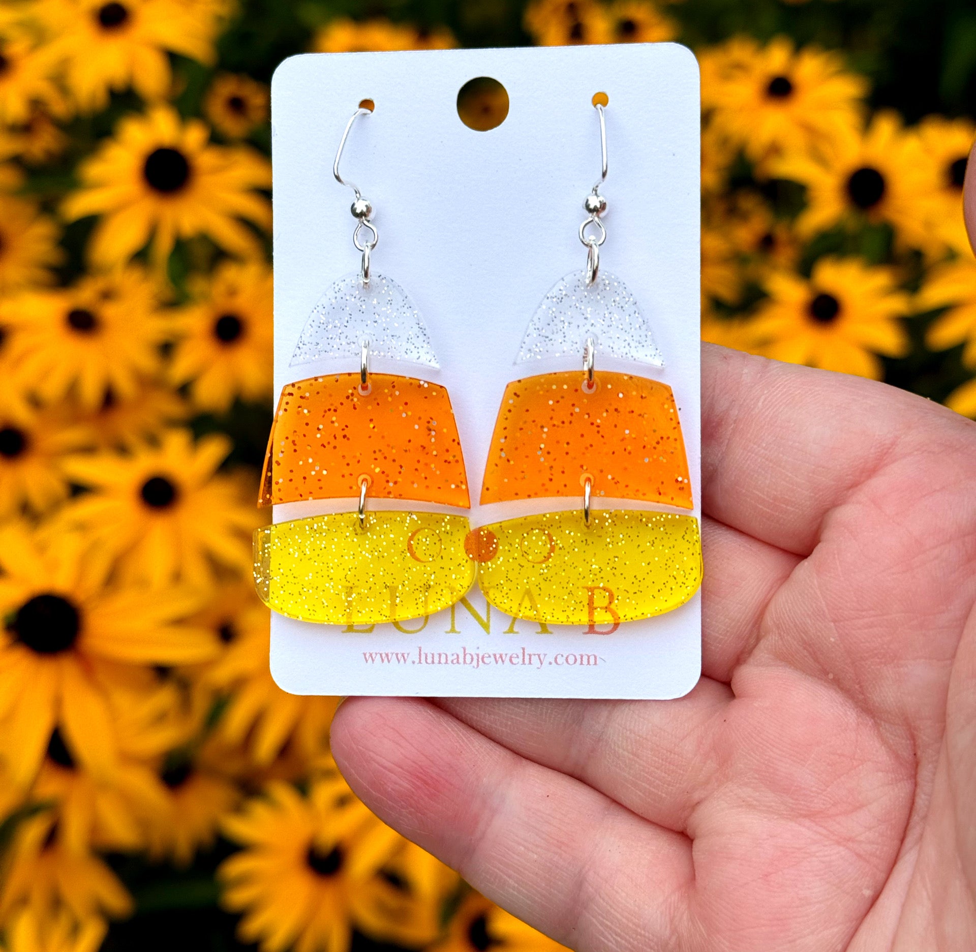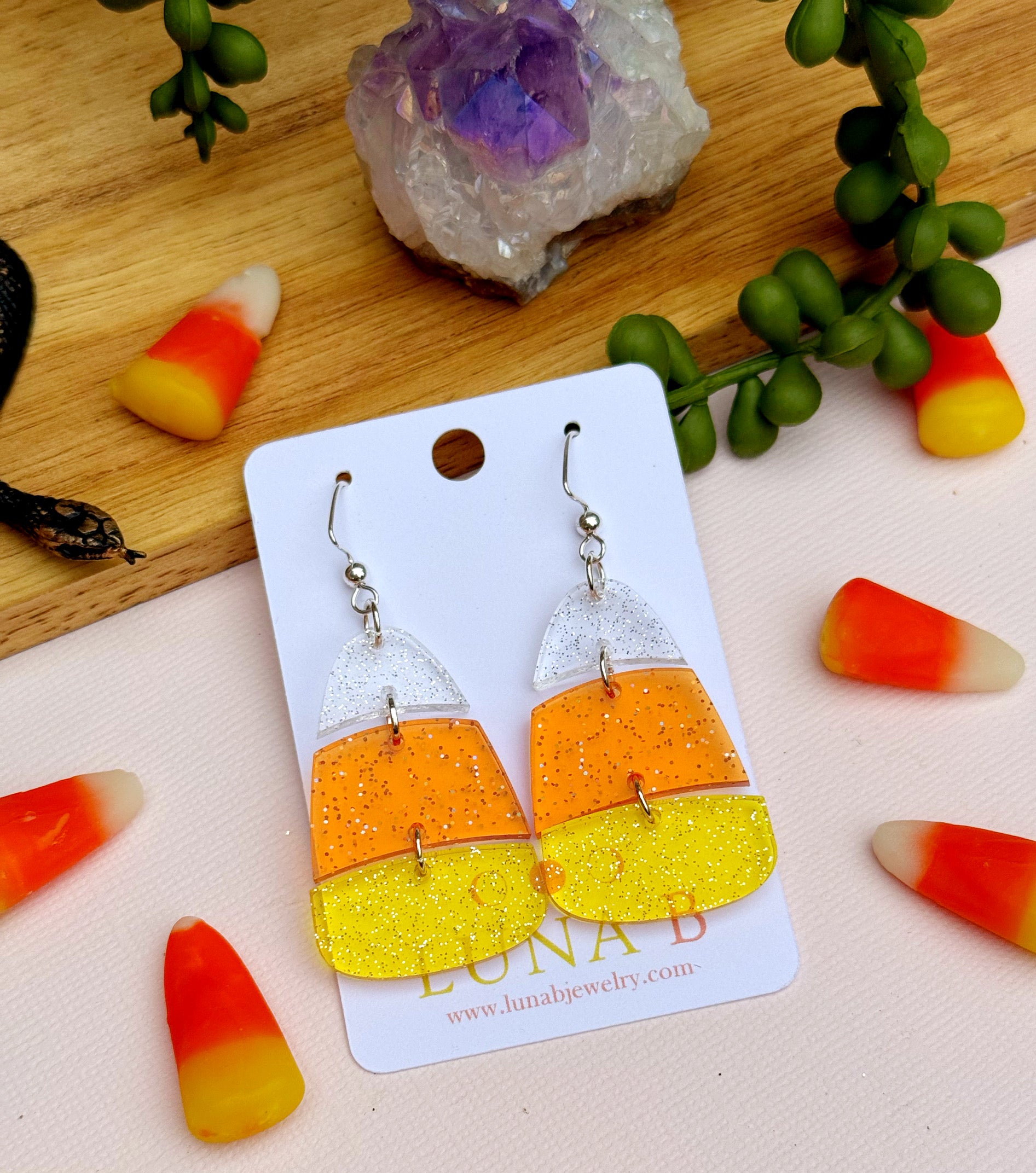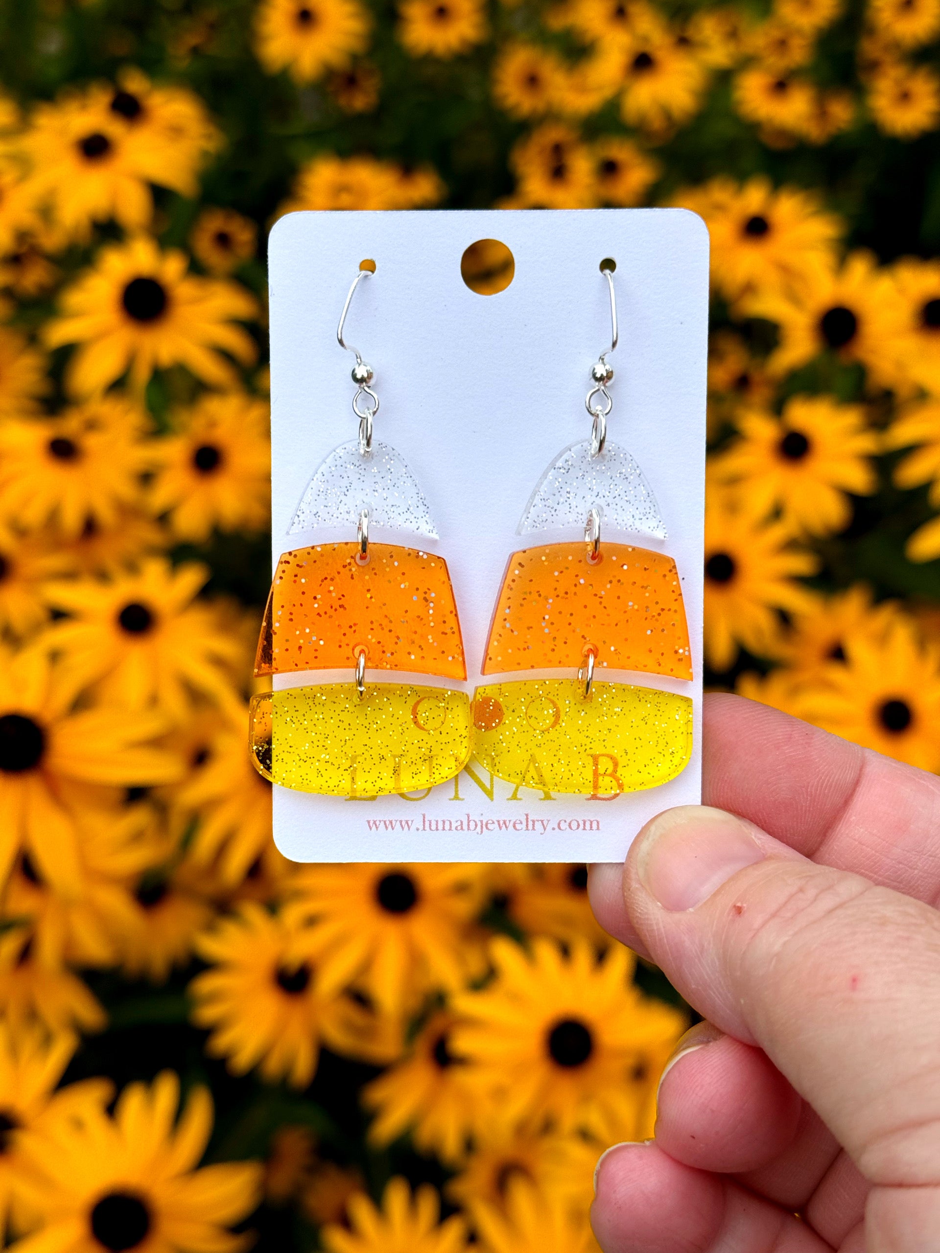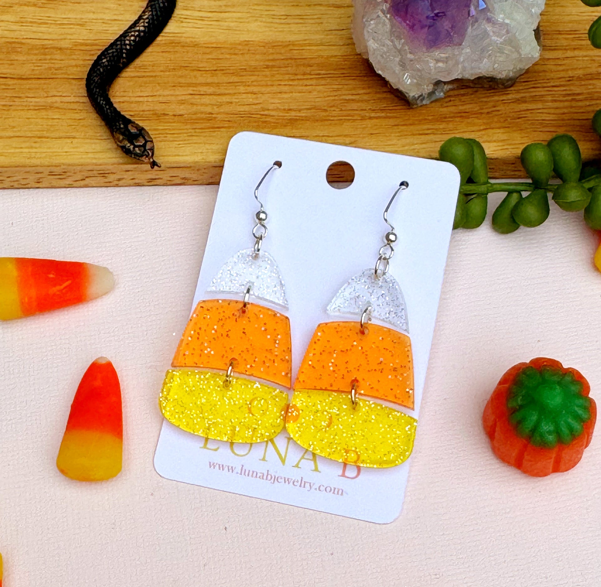 Candy Corn Halloween Earrings – Fall Statement Jewelry for Sensitive Ears