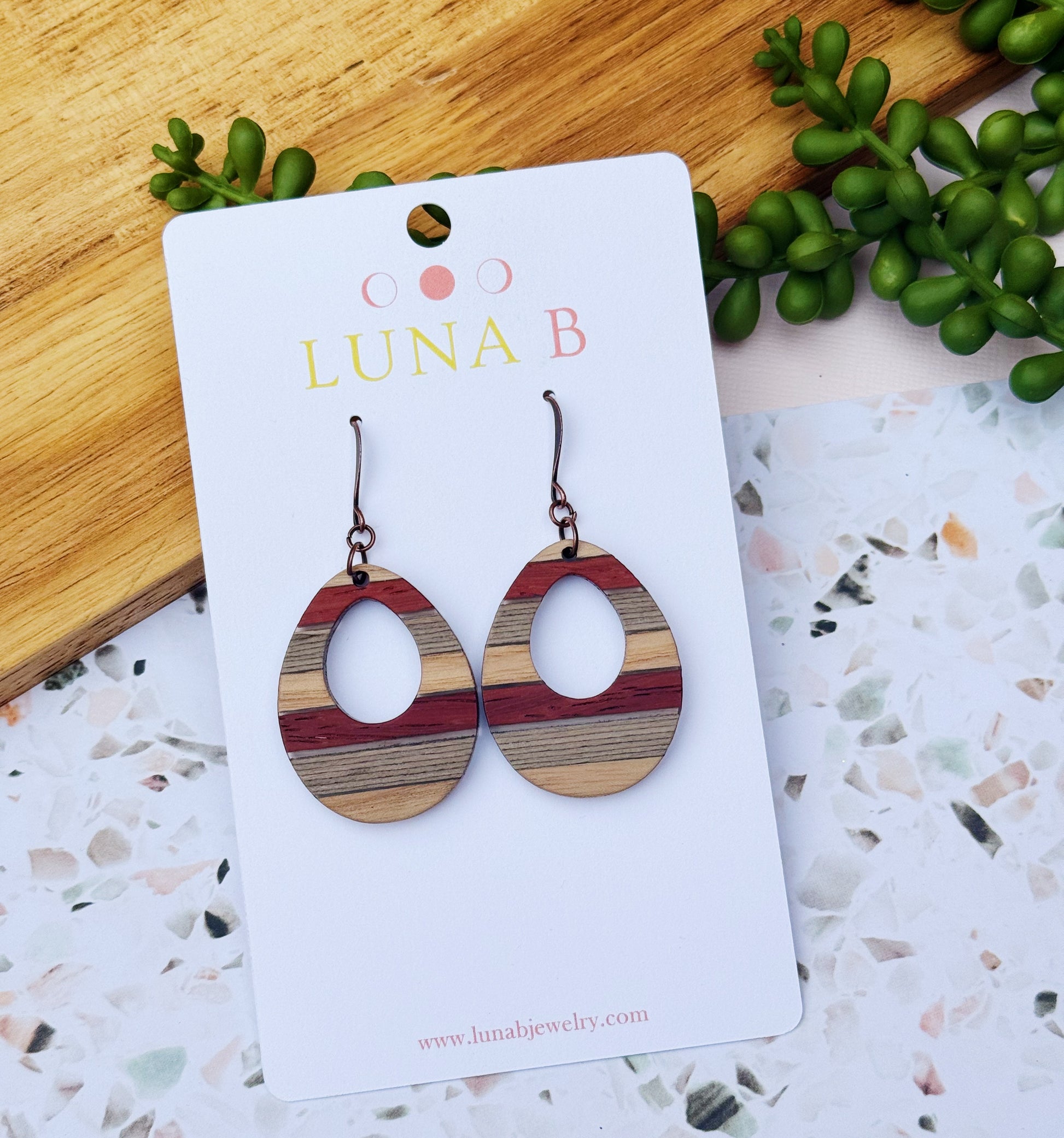 Unleash your earthy bohemian spirit with these captivating teardrop earrings. Layers of gorgeous tones of wood and resin make these a truly standout pair of earrings. They're your perfect companion for those grounded days, transitioning seamlessly from a day at the office to an evening beach walk.