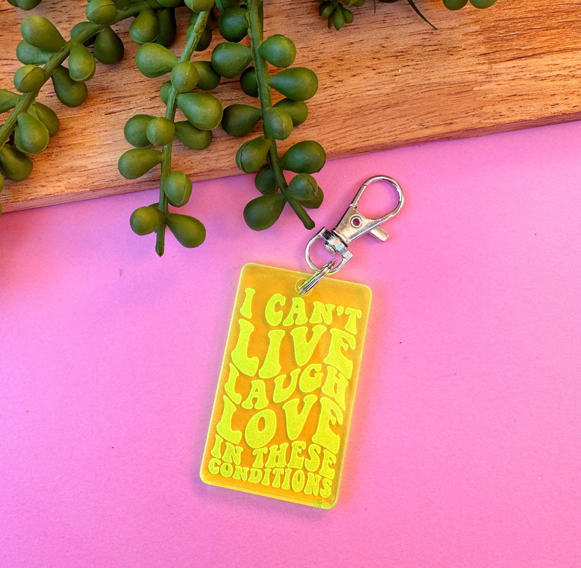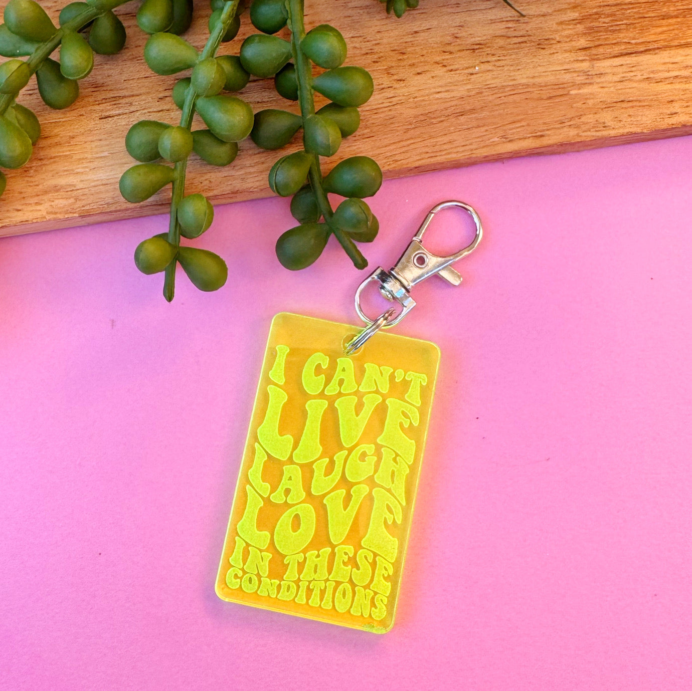 “I Can’t Live Laugh Love in These Conditions” Keychain – Peak Existential Sass 🔑💀