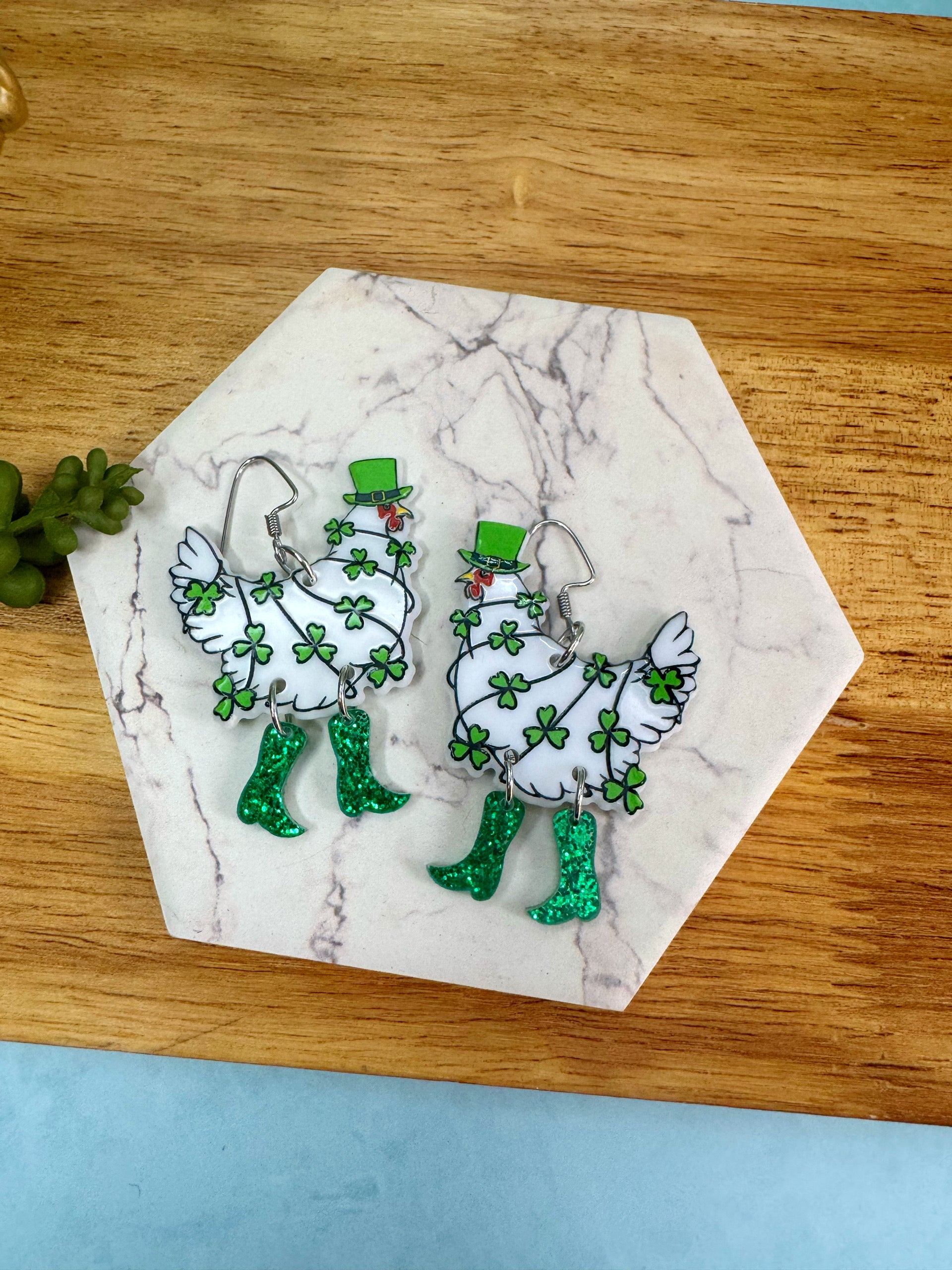 Lucky Chickens in Boots Earrings | Shamrock Earrings