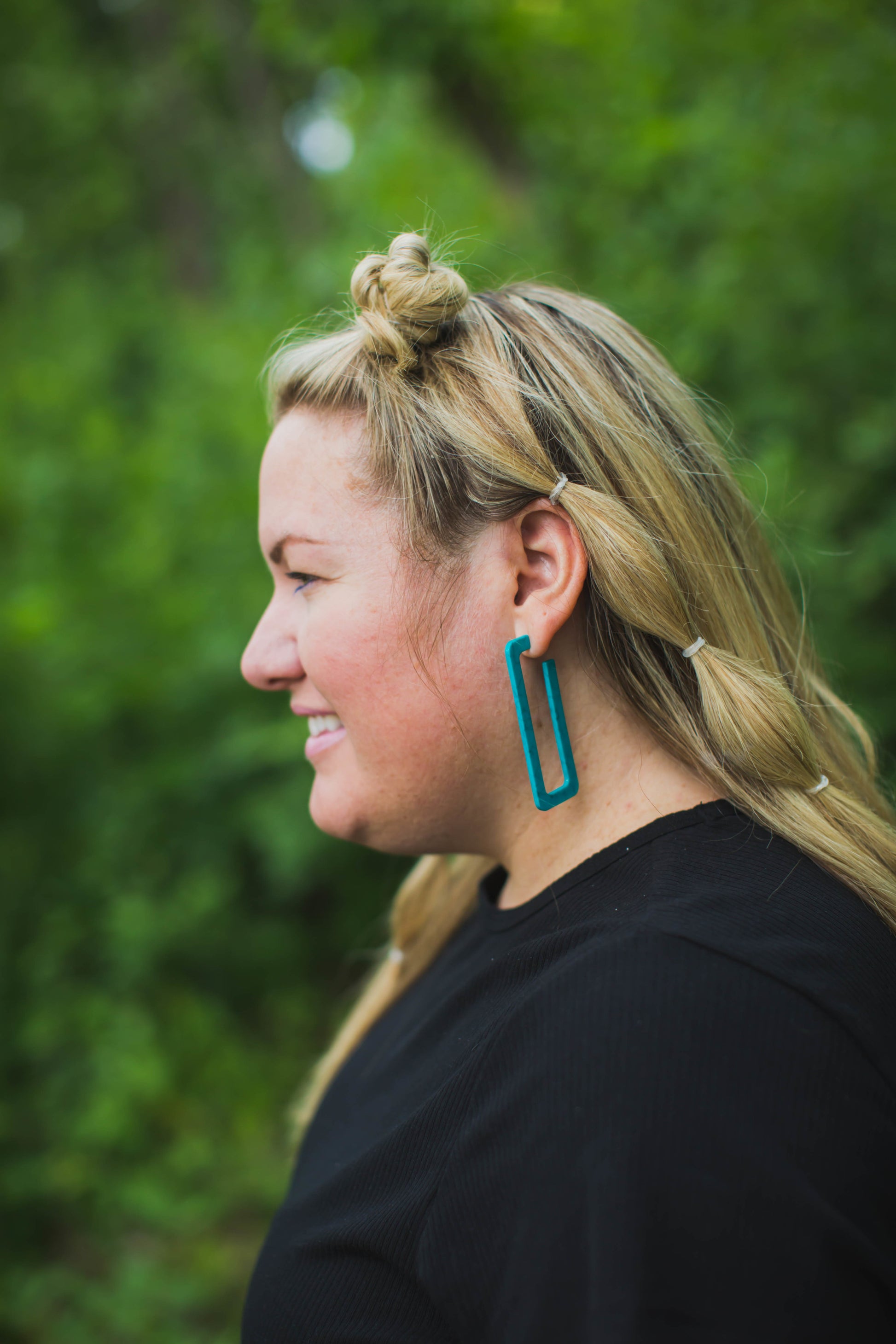 Get ready to rock your summer style with our unapologetically bold Miami Nice hoops! Drenched in a deep, faux turquoise shade that screams vintage 90s nostalgia, these hoops are far from ordinary. Their unique rectangular shape sets them apart, making them the ultimate statement piece.