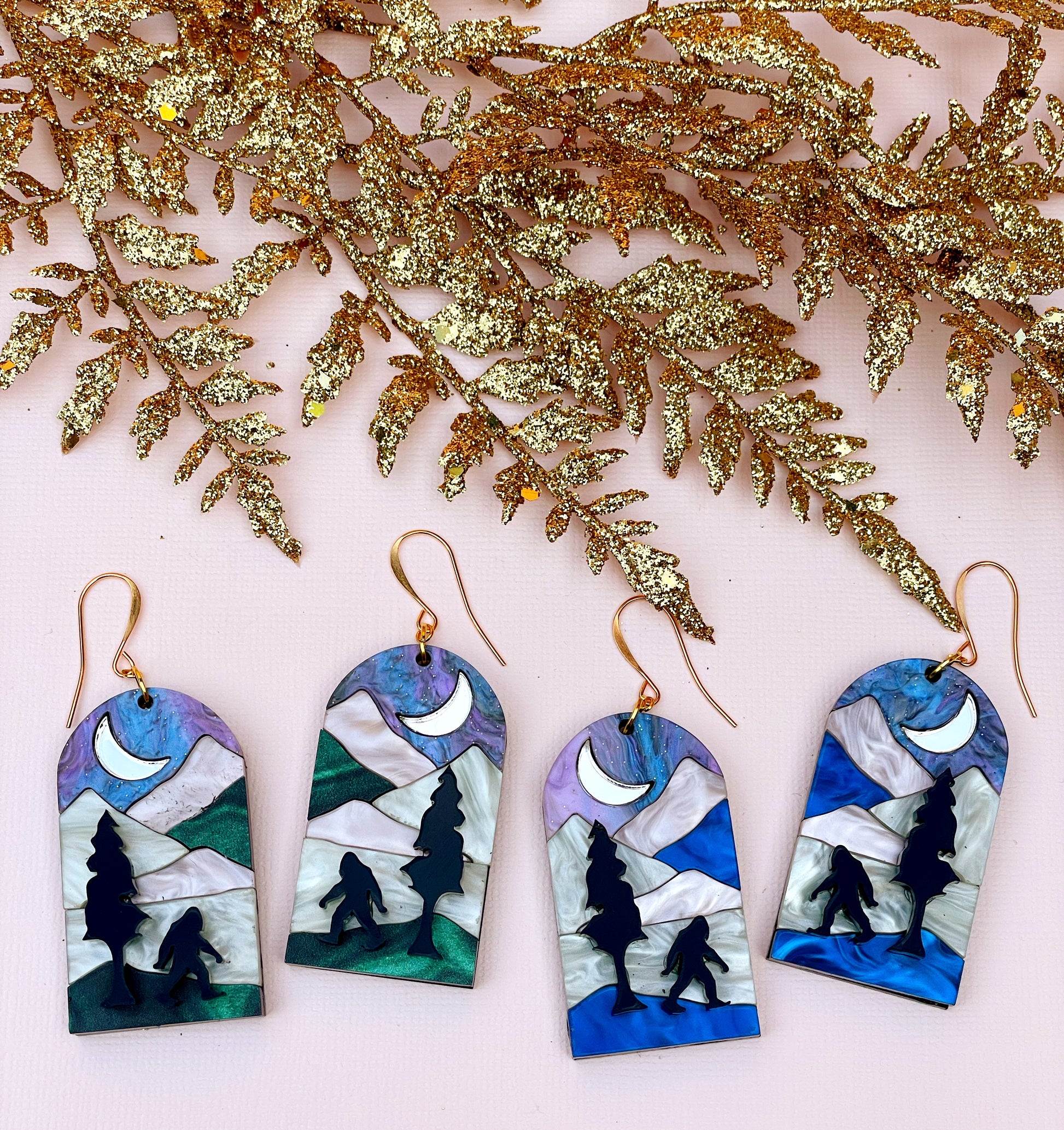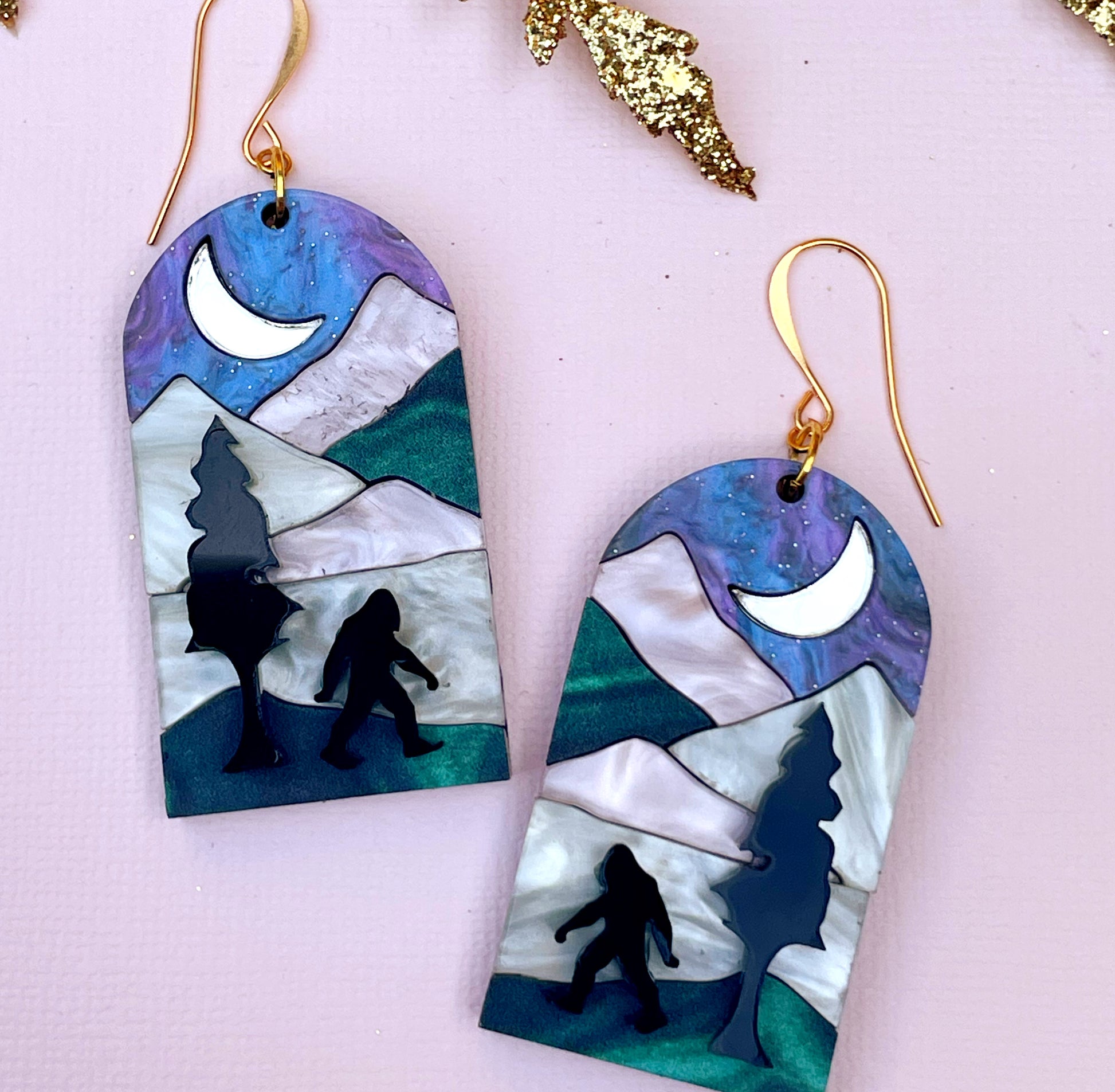 Are you a Bigfoot believer or a devoted doubter? Either way, you can't deny the allure of hooking a legendary creature on your earlobes. Imagine sporting these Bigfoot silhouettes, artfully jaunting against a backdrop of majestic mountains under a moonlit purple sky. If you're a dreamer, a daredevil, or just someone who loves a hint of the mystical, these are the earrings for you.
