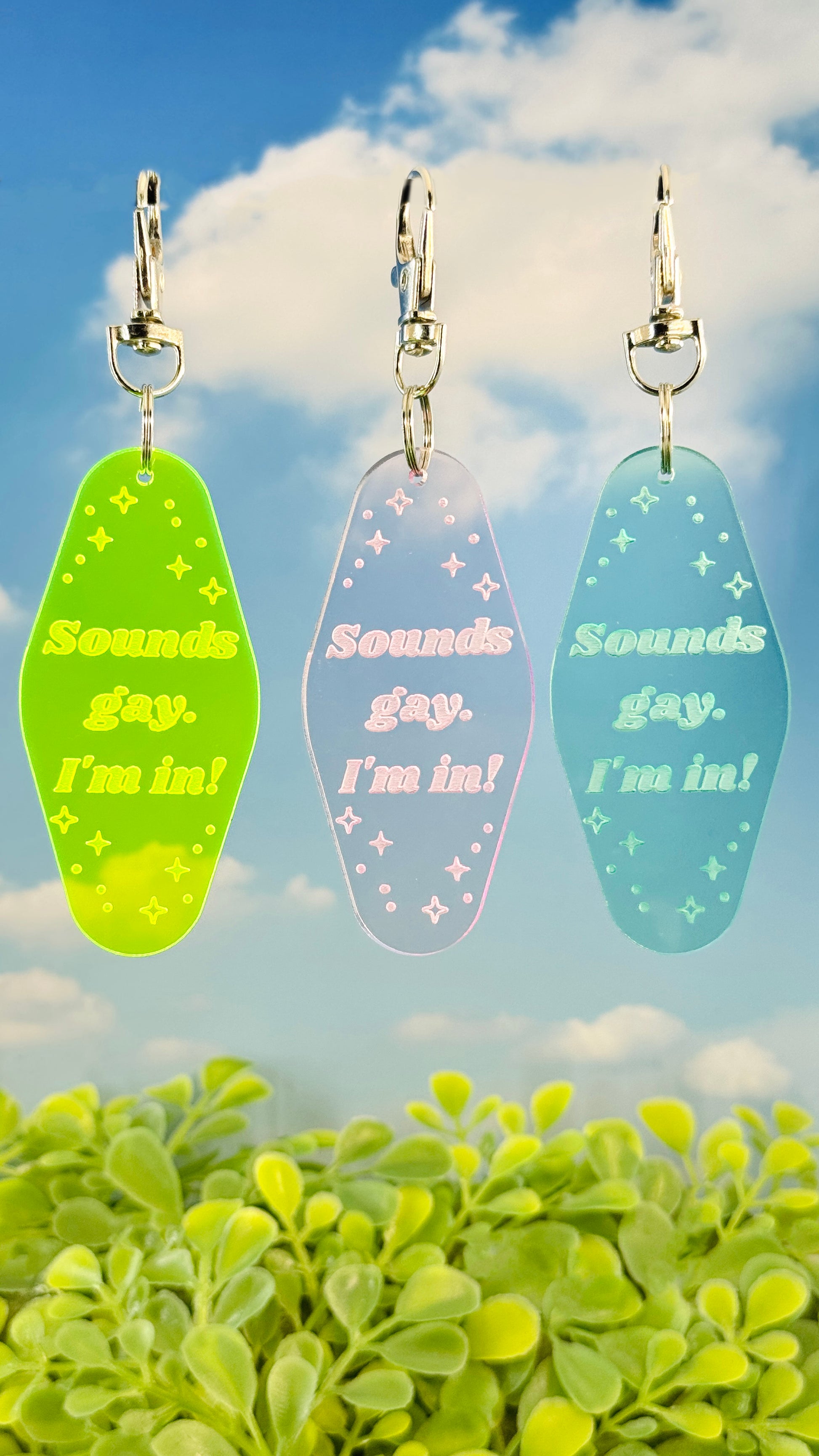 Sounds Gay, I’m In! Retro Motel Keychain – Handmade Pride Accessory