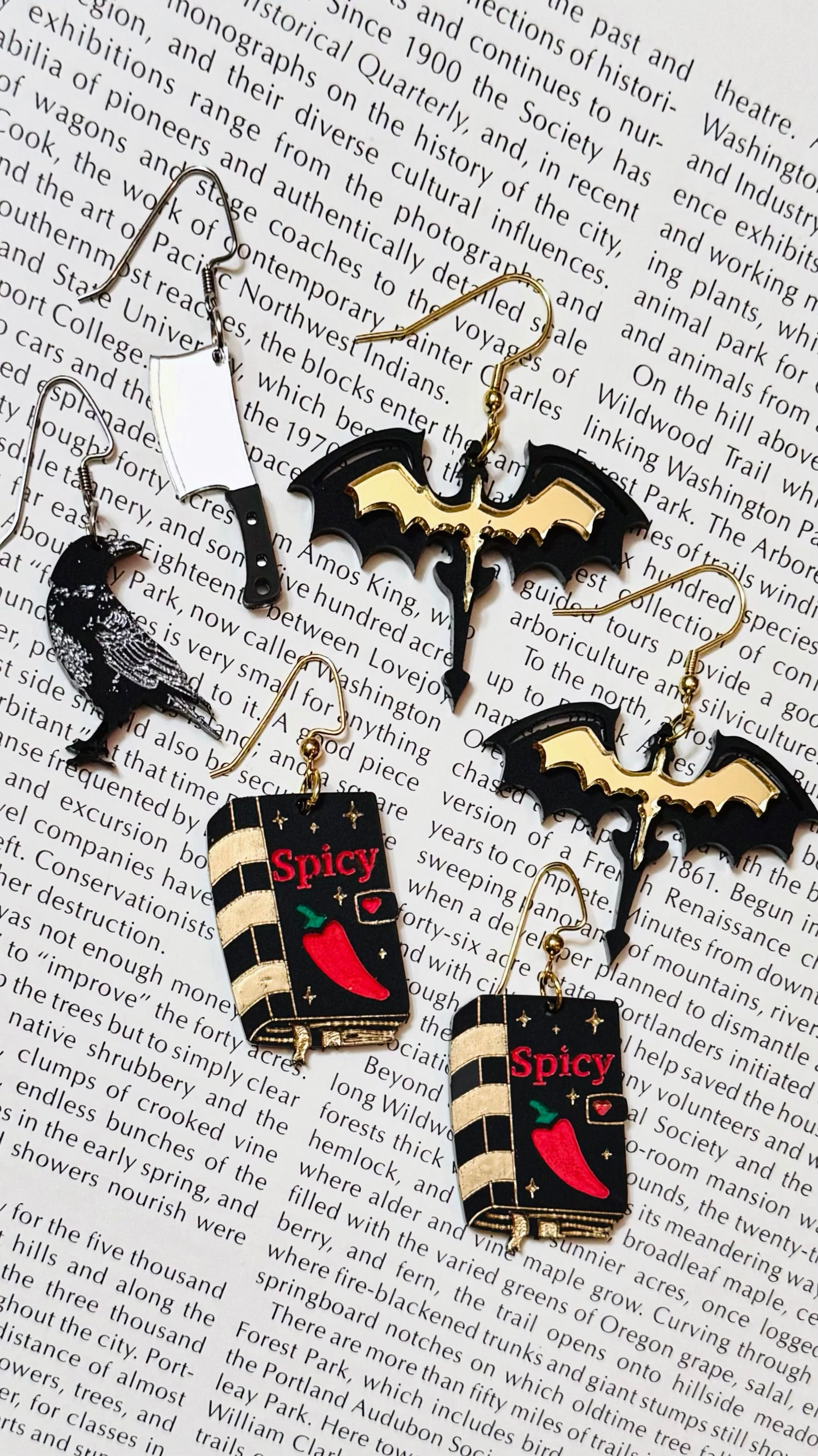 - Hand-painted acrylic earrings inspired by spicy romance novels