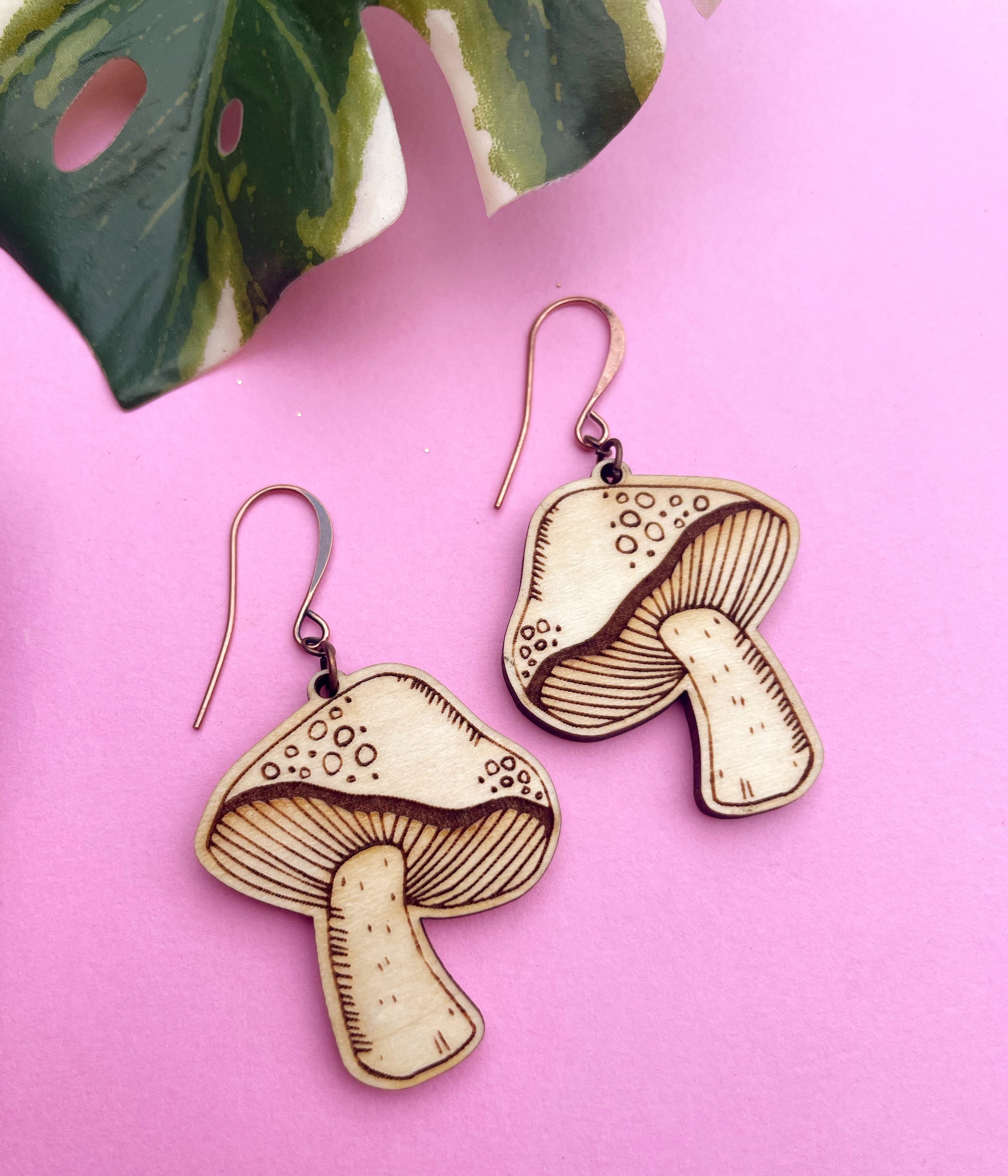 Behold! The Luna B studios have magicked up these enchanting, laser-cut wooden mushroom earrings. Crafted from sustainable basswood - Mother Nature's own renewable resource, these fungi fineries are more than just pretty - they're eco-conscious! And fret not, our ear wires are as carefree as you, made from nickel-free copper.